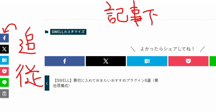 SWELLでSNSシェアボタンを消す方法を紹介していきます!